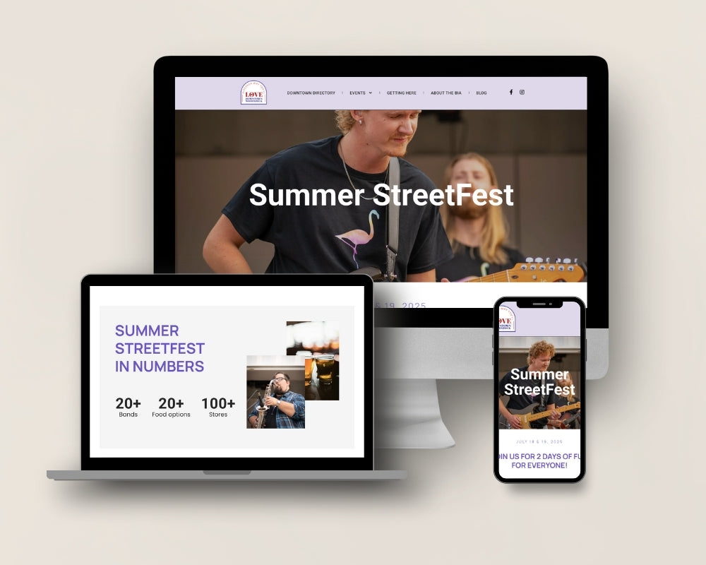 We helped the Downtown Woodstock BIA create an engaging landing page for their Summer Streetfest 2025, their biggest event of the year.